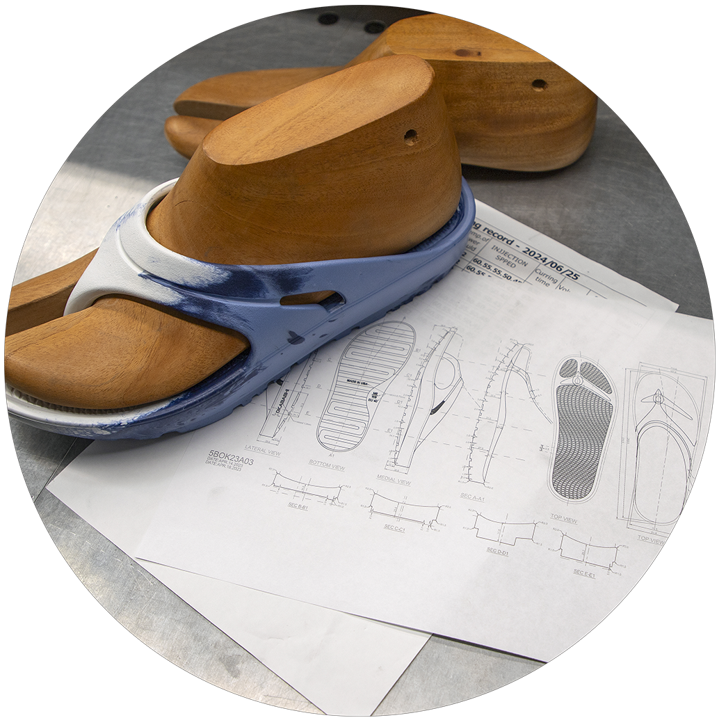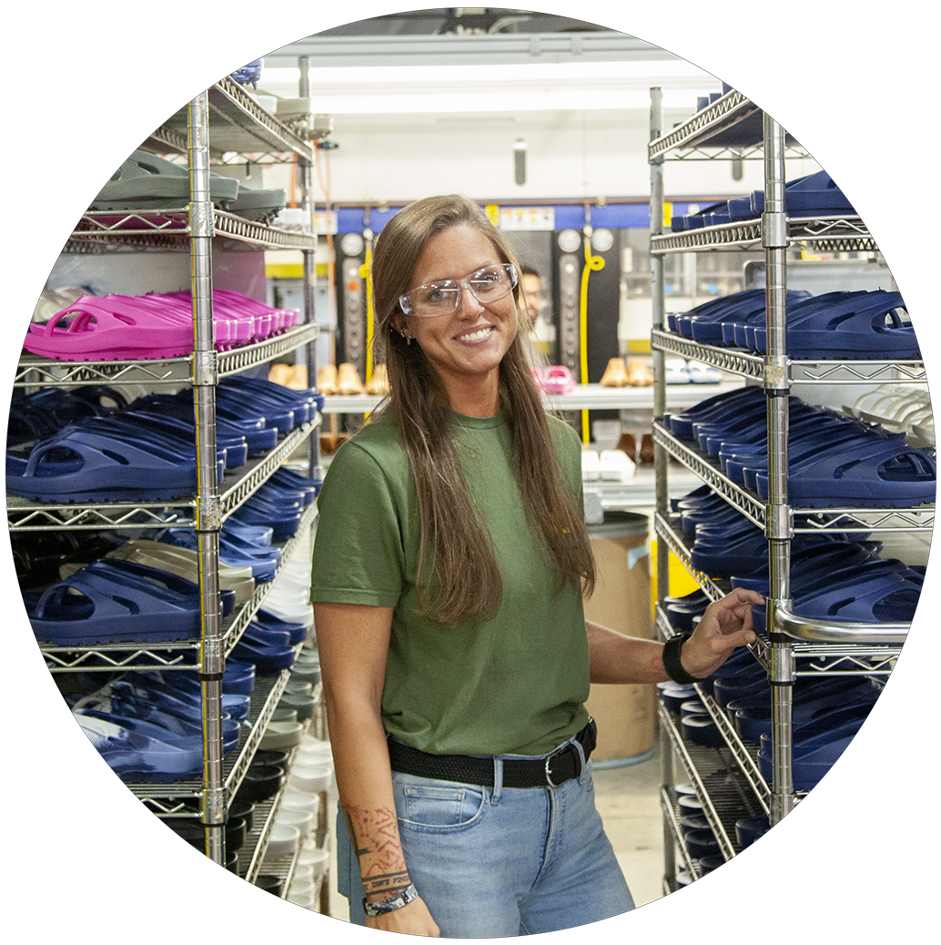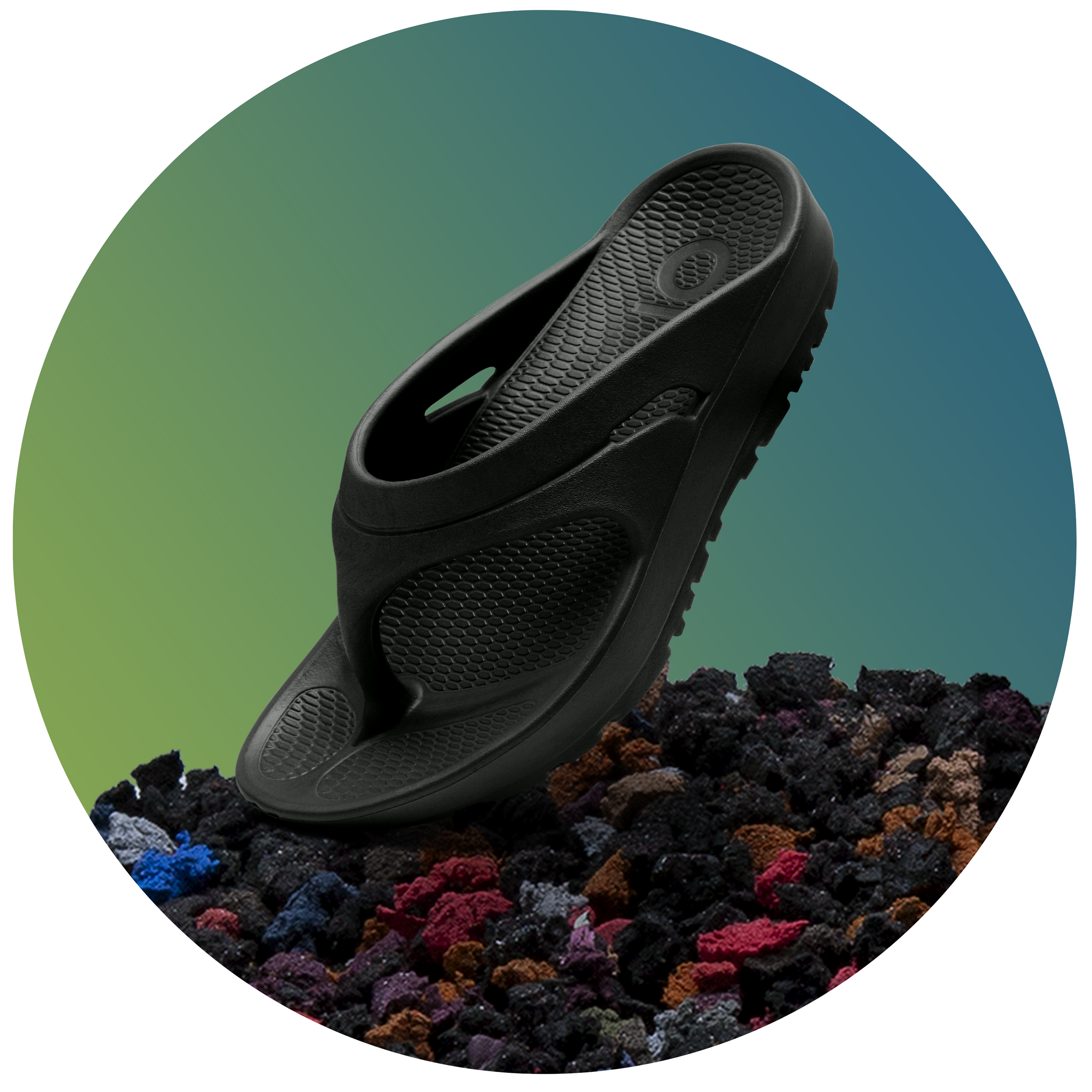 - Recycled and returned HEYLO-marked shoes are combined with USA-sourced injection molded EVA foam to create new Oka.